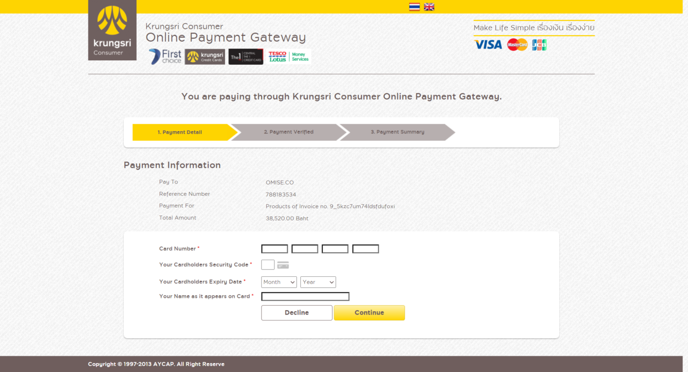 ขั้นตอนที่ 7 : เมือเลือกบัตรแล้วระบบจะเข้าไปยังรูปแบบการกรอกข้อมูลของแต่ละบัตร ให้ทำการกรอกข้อมูลรายละเอียดของบัตร ตามขั้นตอน