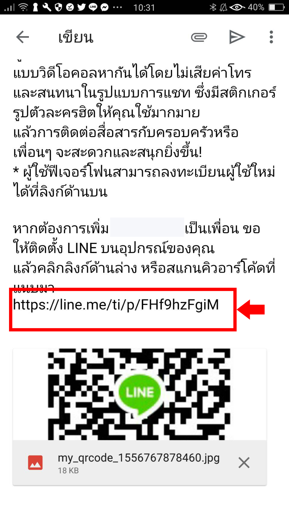 ท่านจะเข้าสู่หน้าส่งอีเมลของท่าน จากนั้นให้ท่านเลื่อนลงไปที่ด้านล่างสุด ท่านจะพบลิ้งค์ Url ของท่านที่ไว้ใช้แอดไลน์ของท่าน
