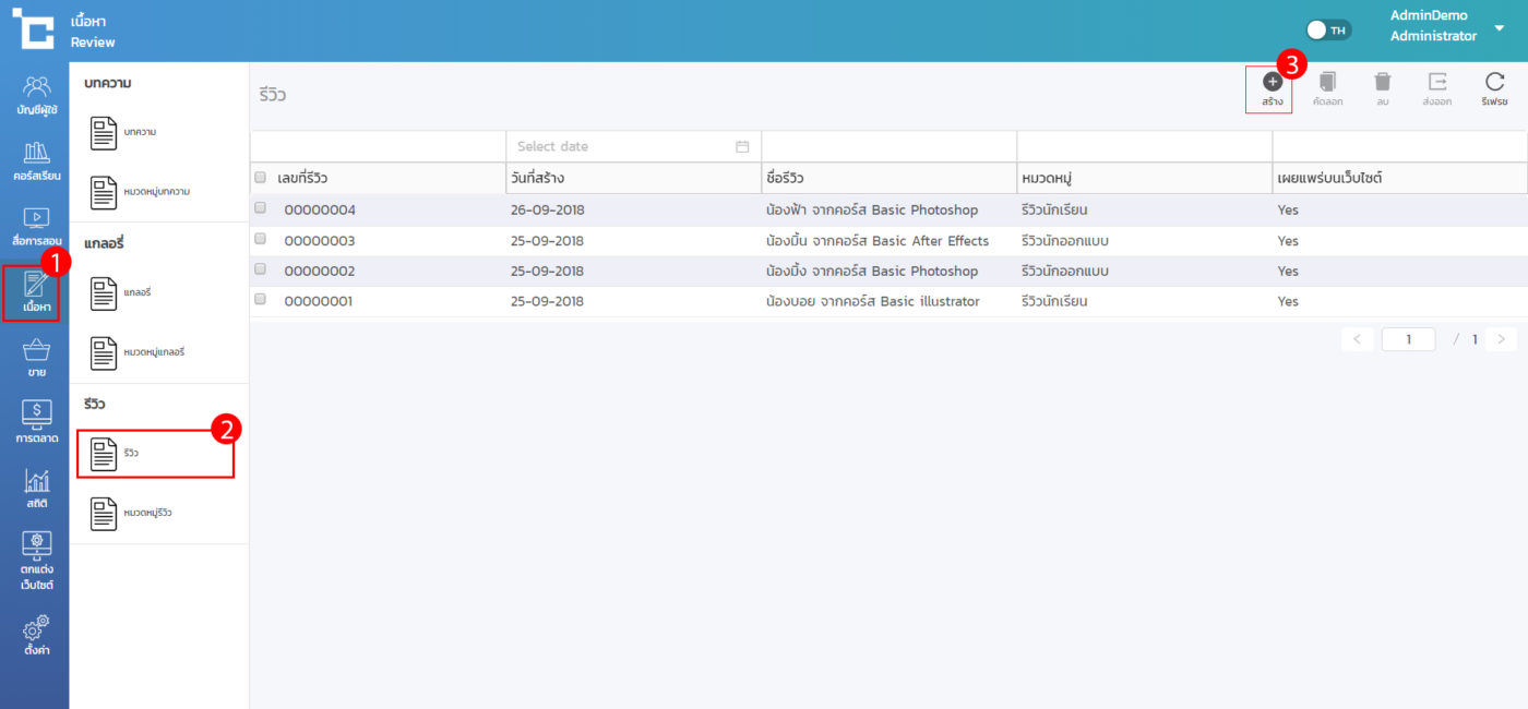 ขั้นตอนที่ 1 : เลือกเมนู เนื้อหา > เมนู รีวิว > เมนูคำสั่ง สร้าง