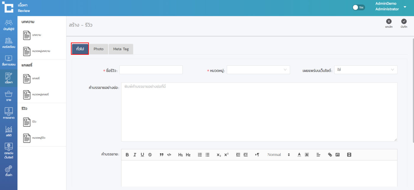 - เลือกหมวดหมู่ของรีวิว (ดูวิธีการสร้างหมวดหมู่ คลิกที่นี่)