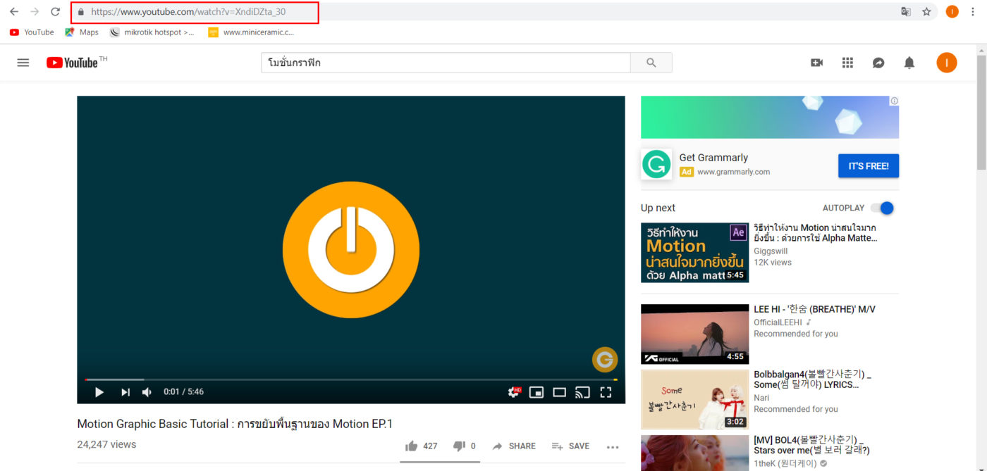 ตัวอย่างลิงค์ Embed URL จาก Youtube