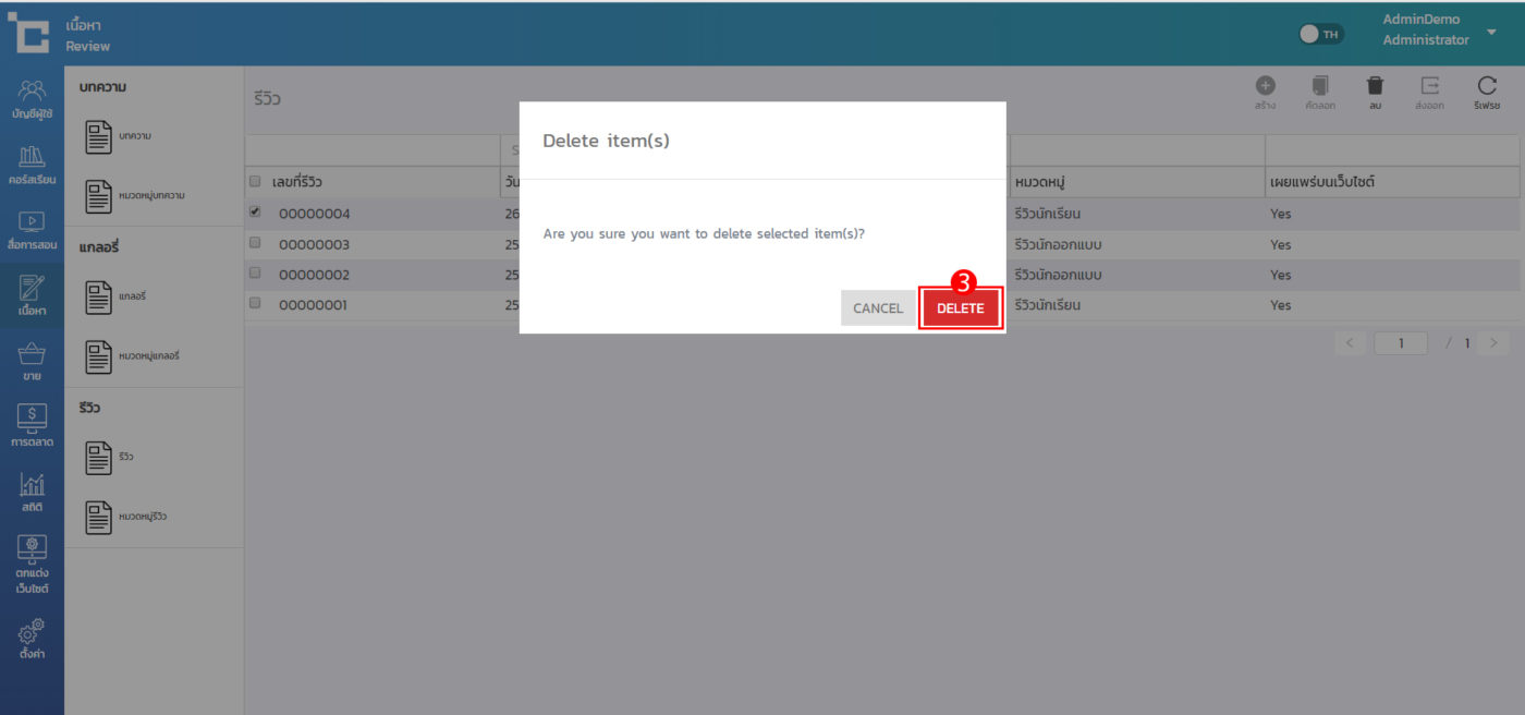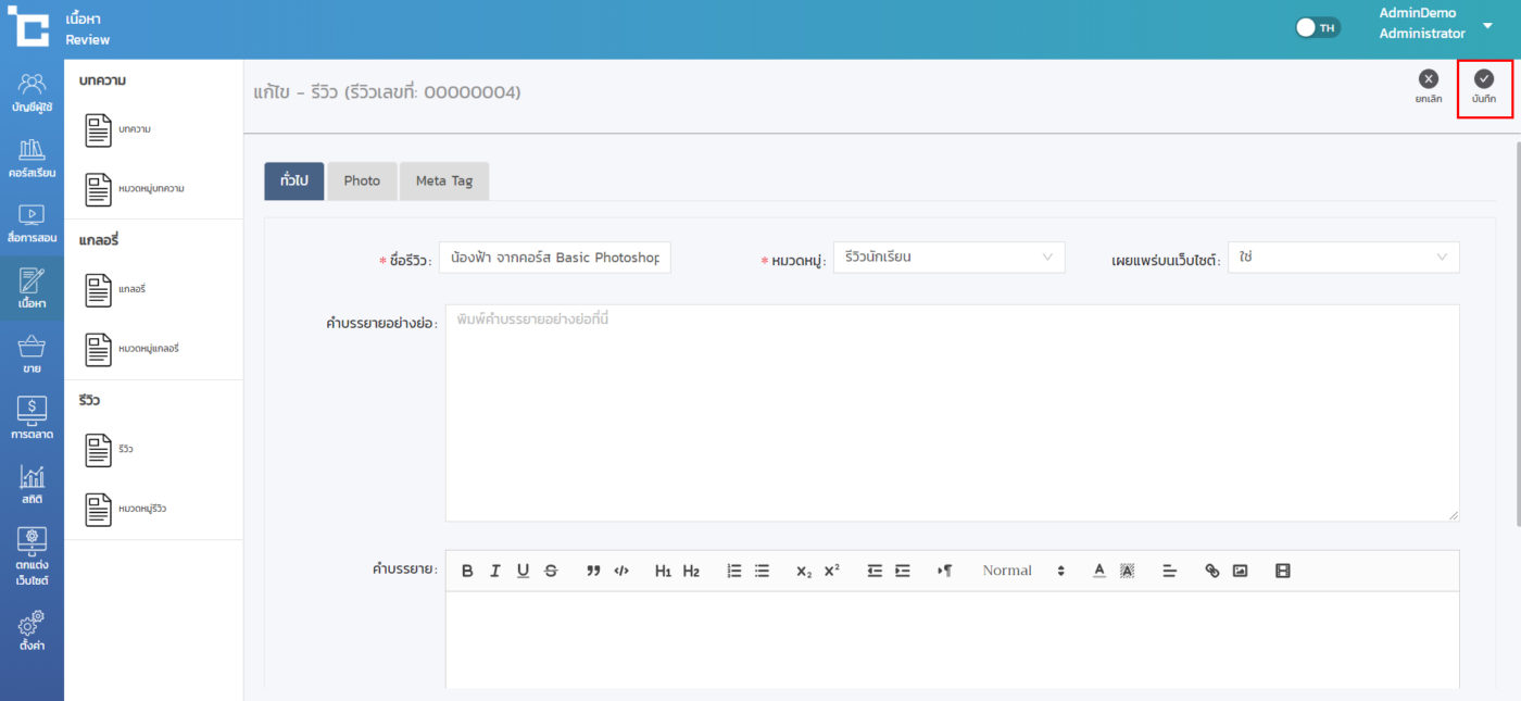 เลือกรีวิวที่ต้องการ > ทำการแก้ไขรีวิว > บันทึก