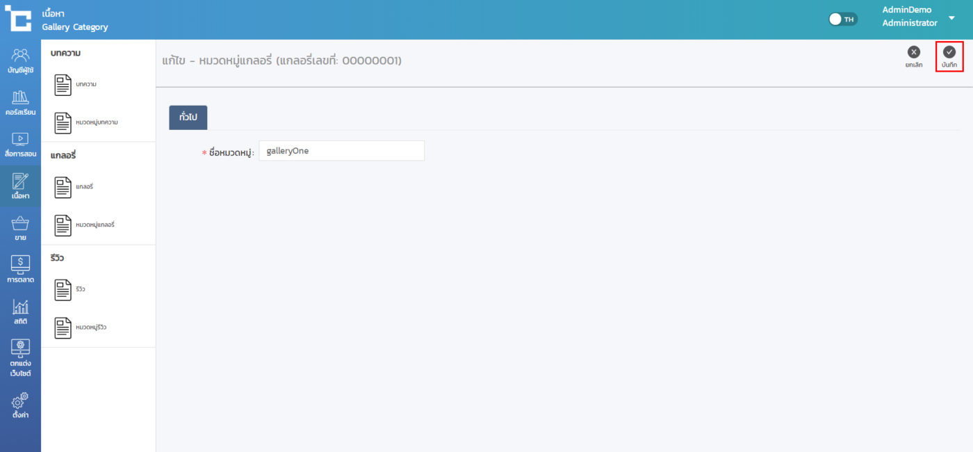 เลือกหมวดหมู่ที่ต้องการ > ทำการแก้ไขชื่อหมวดหมู่ > เลือกเมนูคำสั่ง บันทึก
