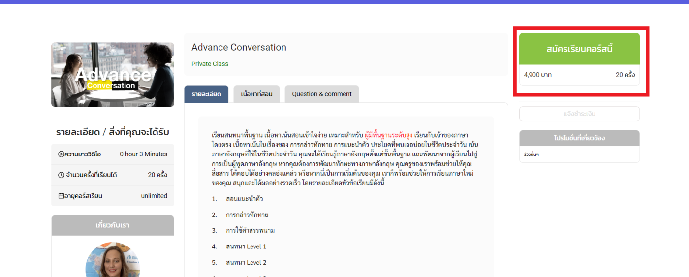 คลิกที่ปุ่ม สมัครเรียนคอร์สนี้