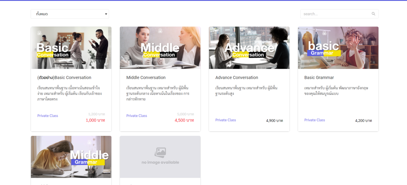 ไปยังเมนู คอร์สเรียน > เลือกคอร์สที่ต้องการลงทะเบียนเรียน