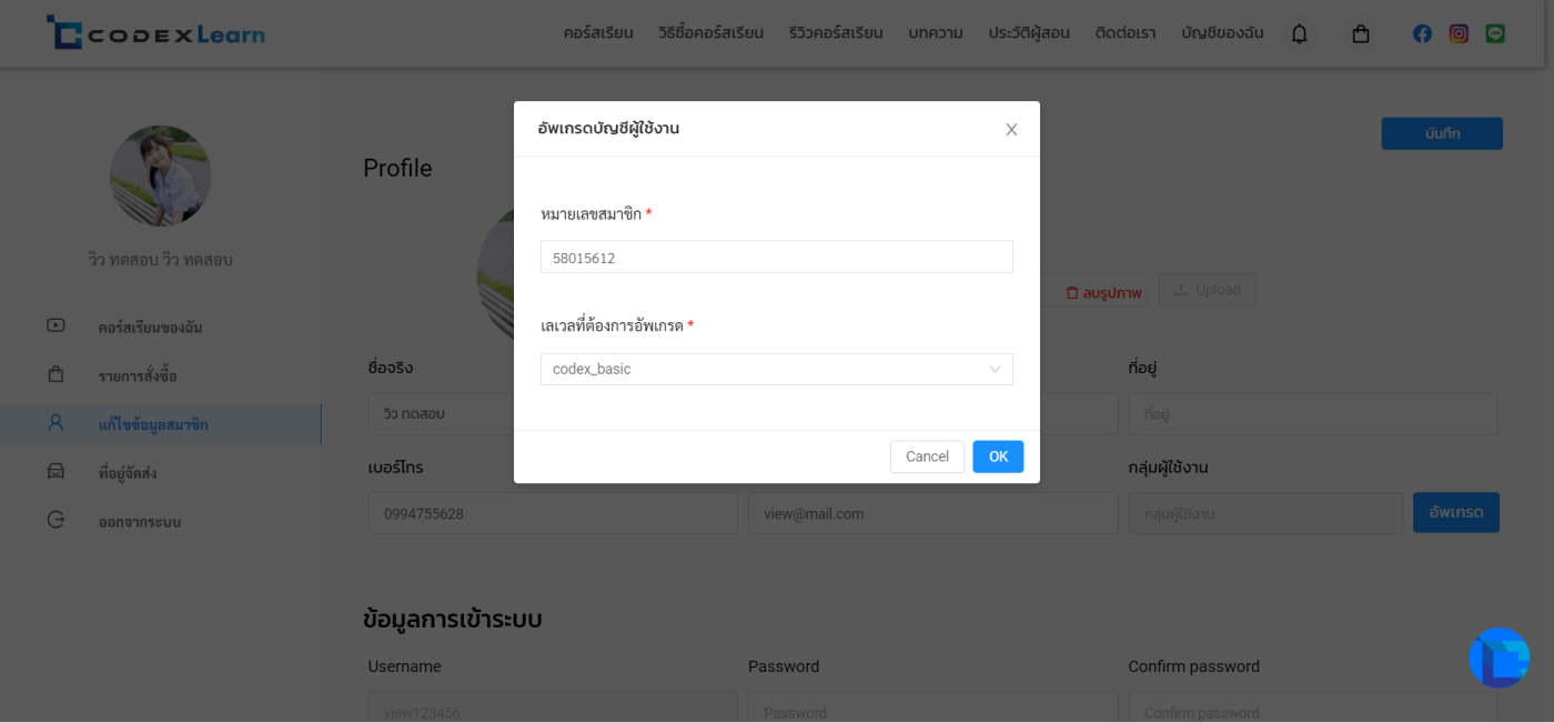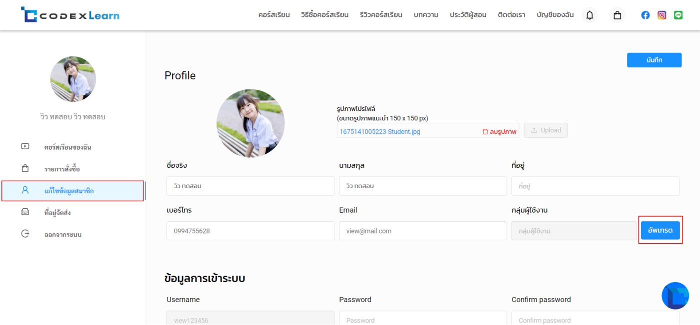 - ไปยังเมนู แก้ไขข้อมูลสมาชิก > อัพเกรด