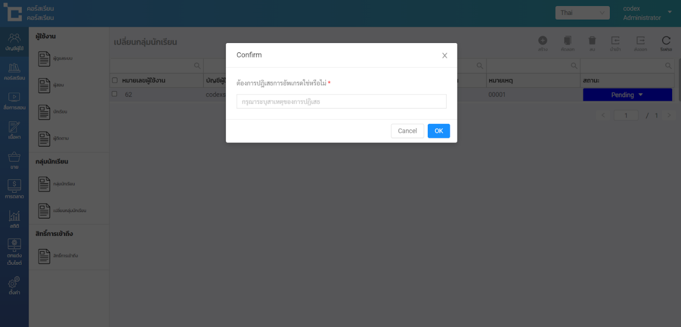 - การแจ้งเตือนเมื่อผู้ใช้งานขอเปลี่ยนกลุ่มผู้เรียน