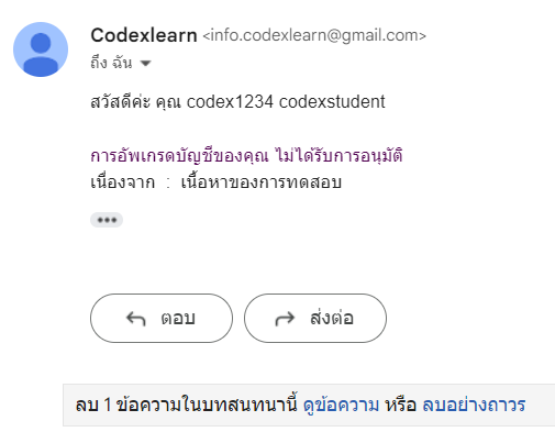 - การแจ้งเตือนผู้ใช้งานเมื่อสถานะถูกปฎิเสธ