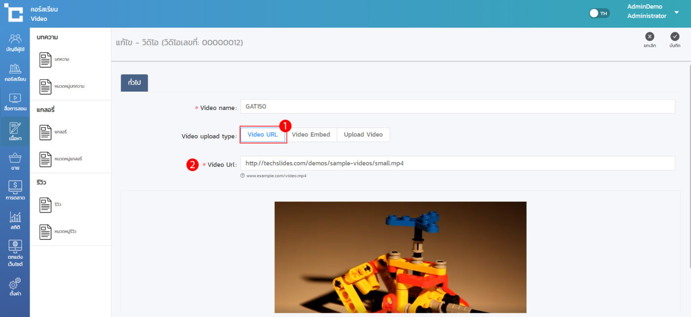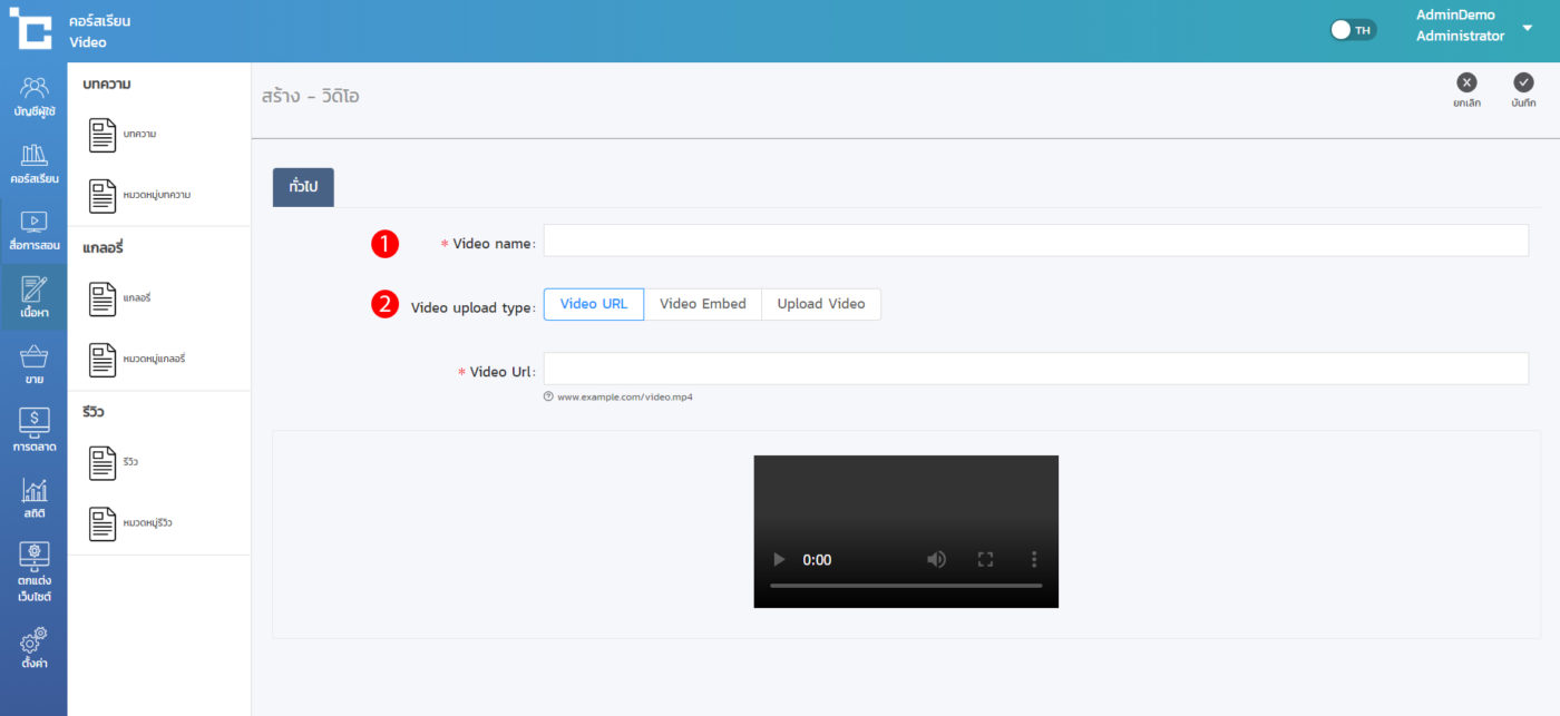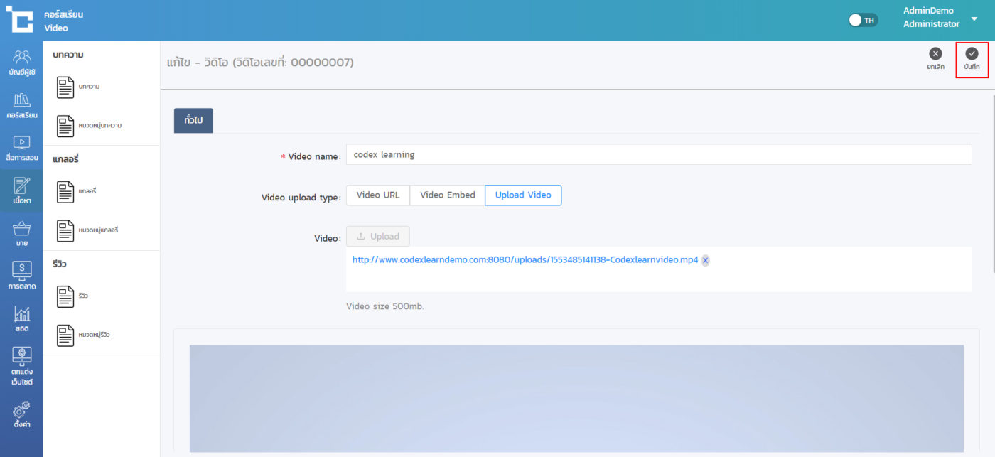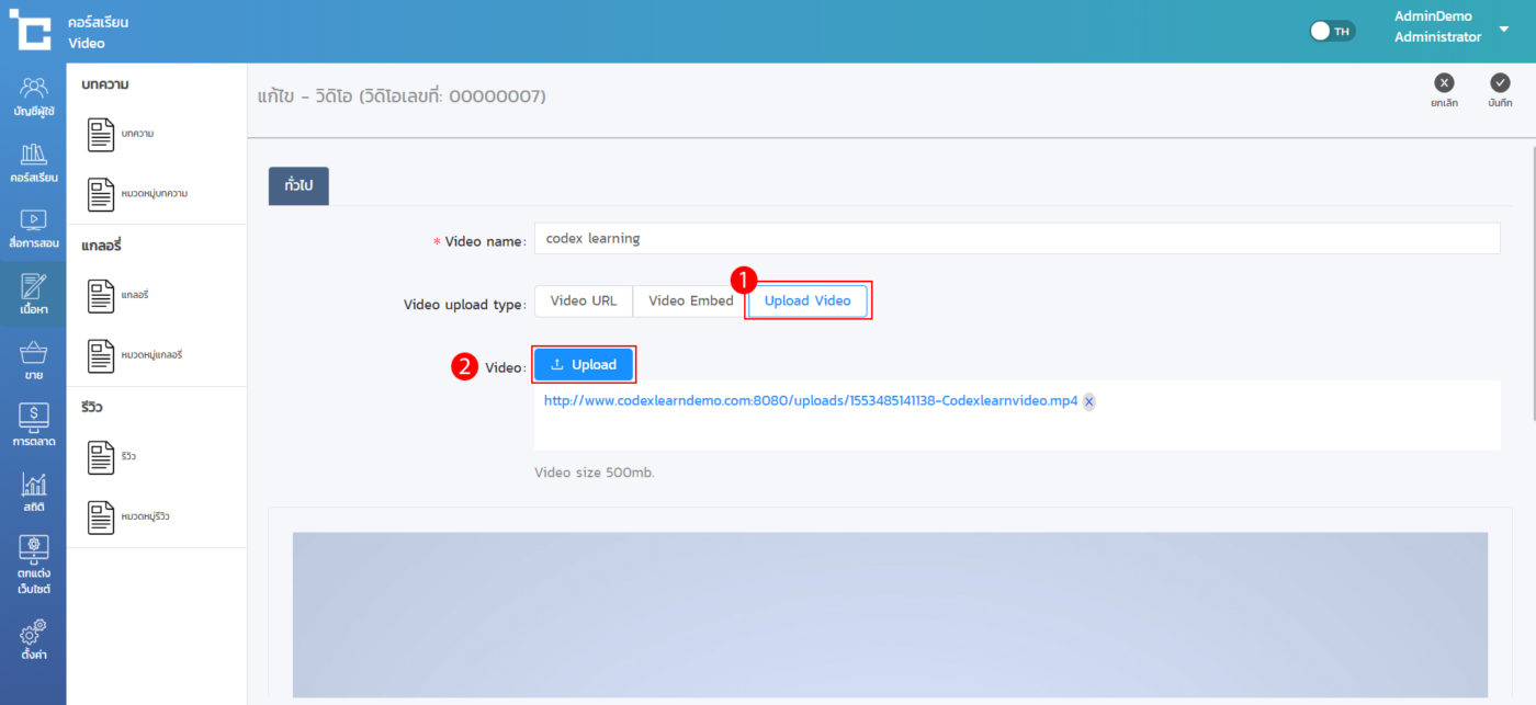 การอัพโหลดวีดีโอ สำหรับการนำไปใช้ ในการสร้างคอร์สเรียน