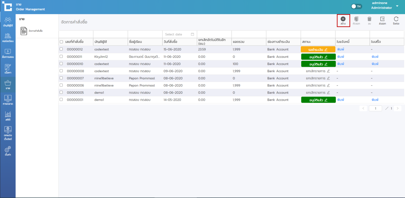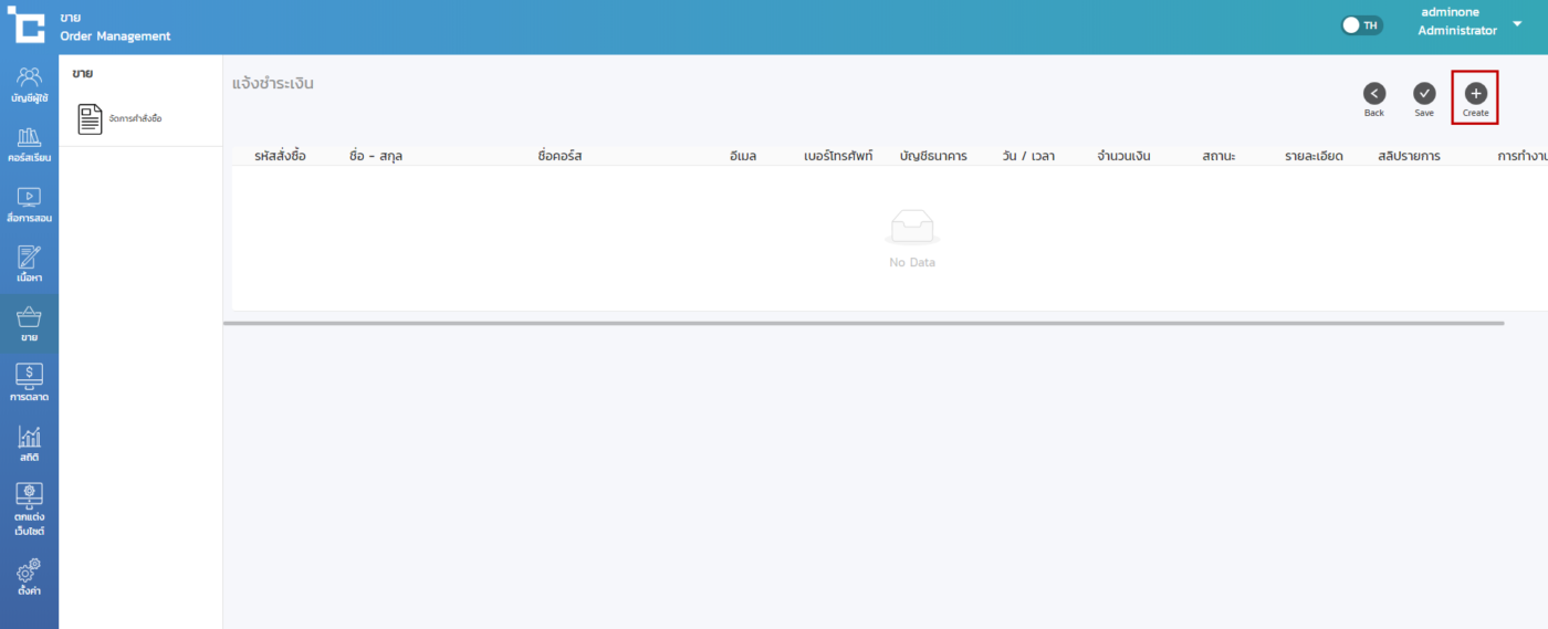 - เลือกไปยังเมนู ขาย > กด สร้าง