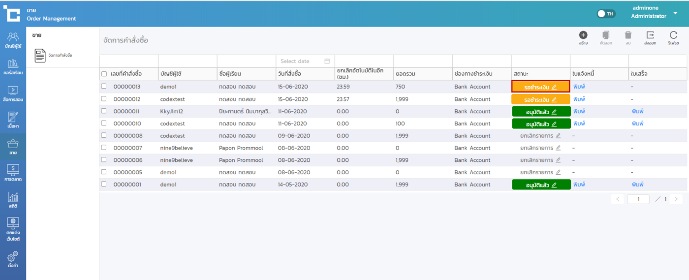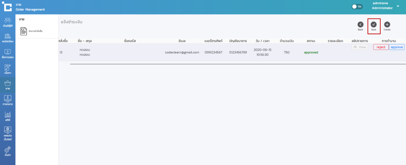 4.หากต้องการอนุมัติในทันที > ให้คลิกไปที่ปุ่ม รอชำระเงิน