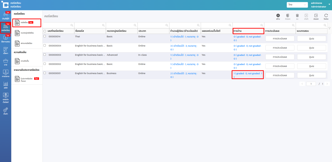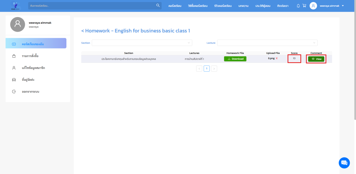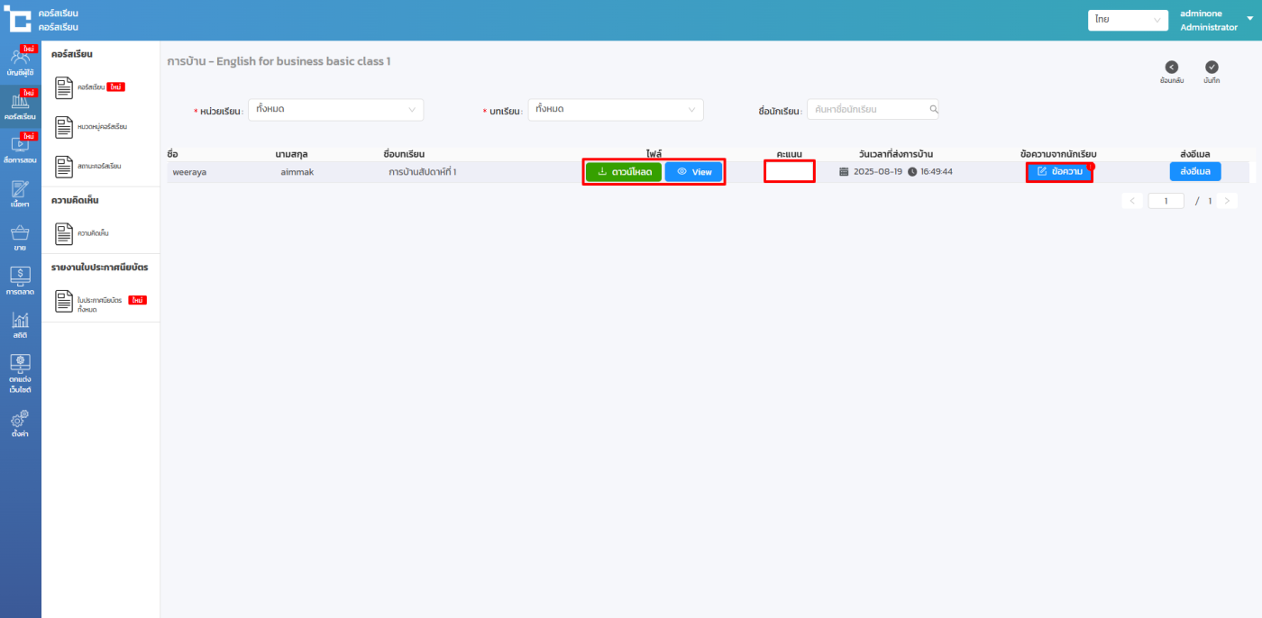 กรณีที่คุณมีการอัพโหลดการบ้านไว้ในคอร์สเรียนของคุณ