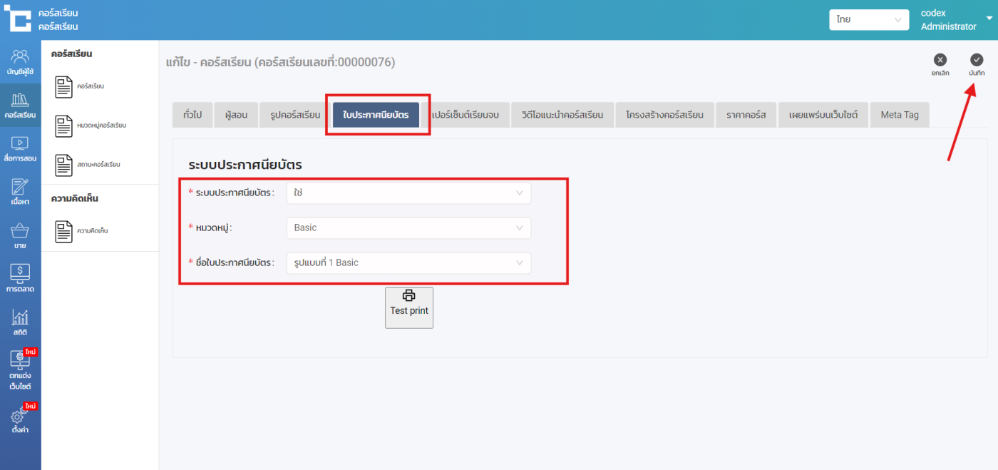 ให้ดำเนินการเพิ่มใบประกาศนียบัตร ไปยังคอร์สเรียน
