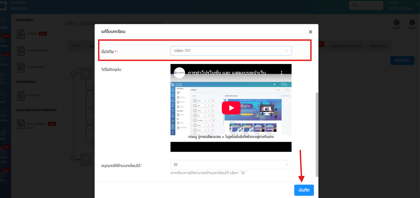 เท่านี้ก็ถือว่าเป็นการเปลี่ยนวิดีโอให้กับคอร์สเรียน เรียบร้อย