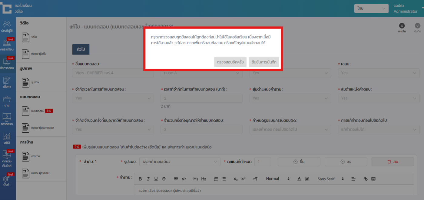 ระบบใหม่ แอดมินจะไม่สามารถทำการแก้ไขชุดข้อสอบได้ หากมีการนำชุดข้อสอบนั้น ถูกไปใช้งานในคอร์สเรียนแล้ว