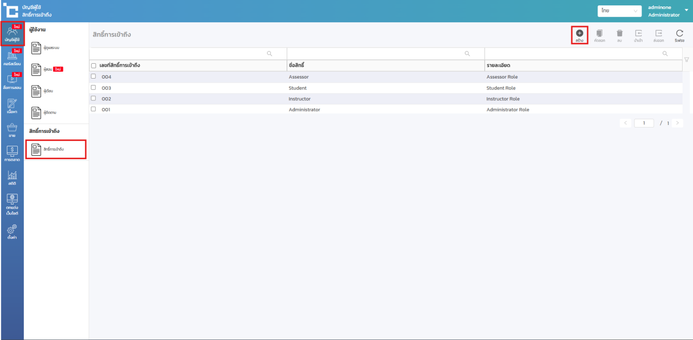 โดยให้คุณไปที่เมนูบัญชีผู้ใช้ > สิทธิ์การเข้าถึง > สร้าง