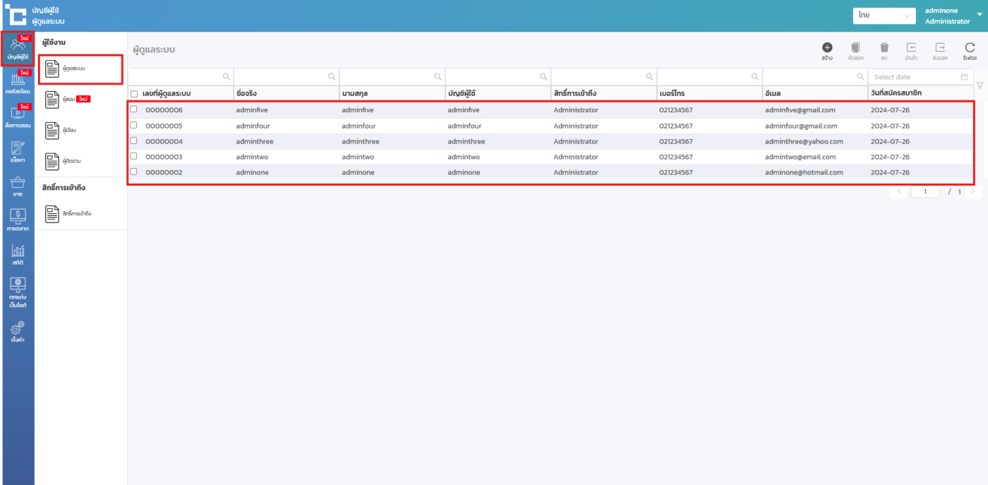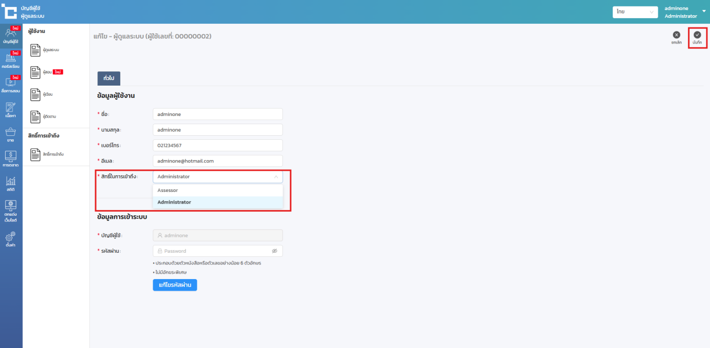 ให้คุณไปที่เมนูบัญชีผู้ใช้ > ผู้ดูแลระบบ > เลือกบัญชีผู้ดูแลระบบที่คุณต้องการกำหนดสิทธิ์
