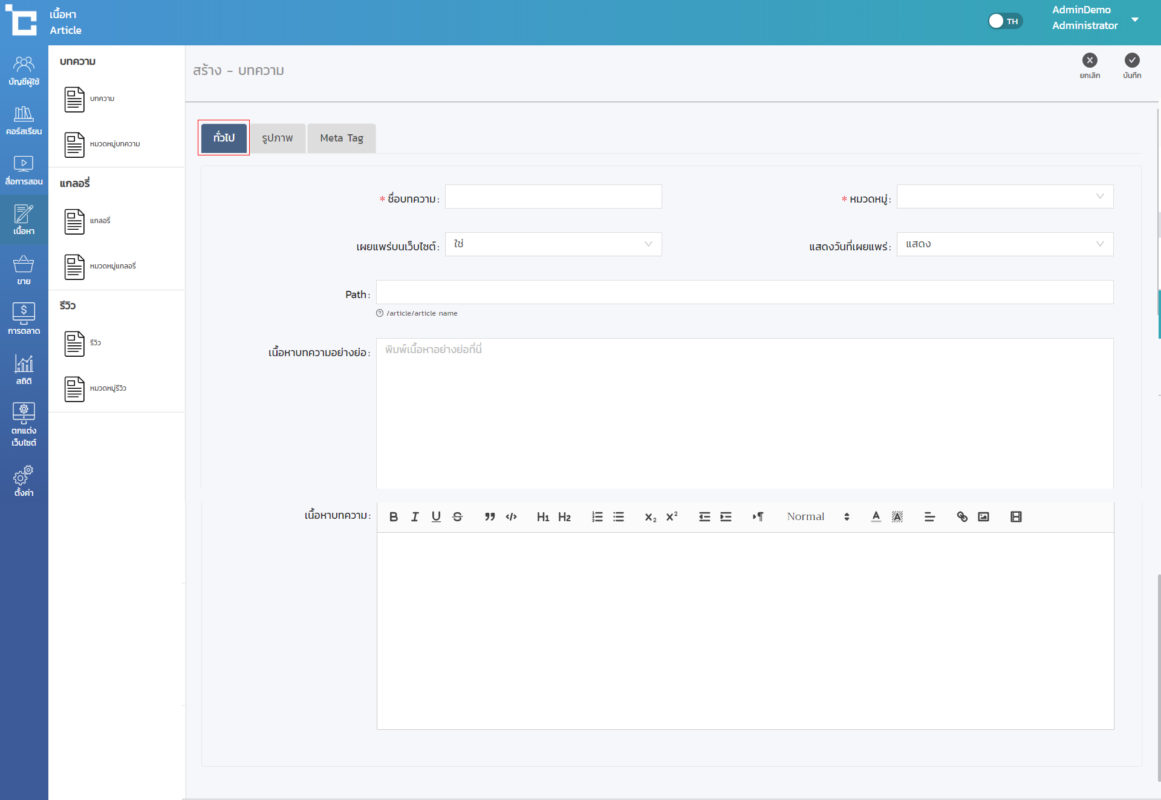 • ใส่ข้อมูลเนื้อหาของบทความ