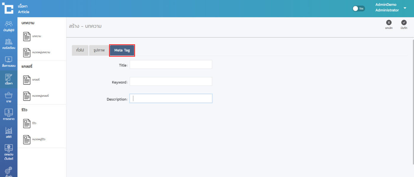 ขั้นตอนที่ 4 : ใส่รายละเอียดในหน้า Meta tag