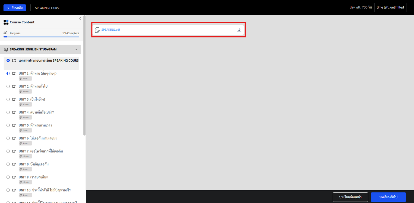 วิธีดาวน์โหลดไฟล์ในคอร์สเรียน บนอุปกรณ์ PC
