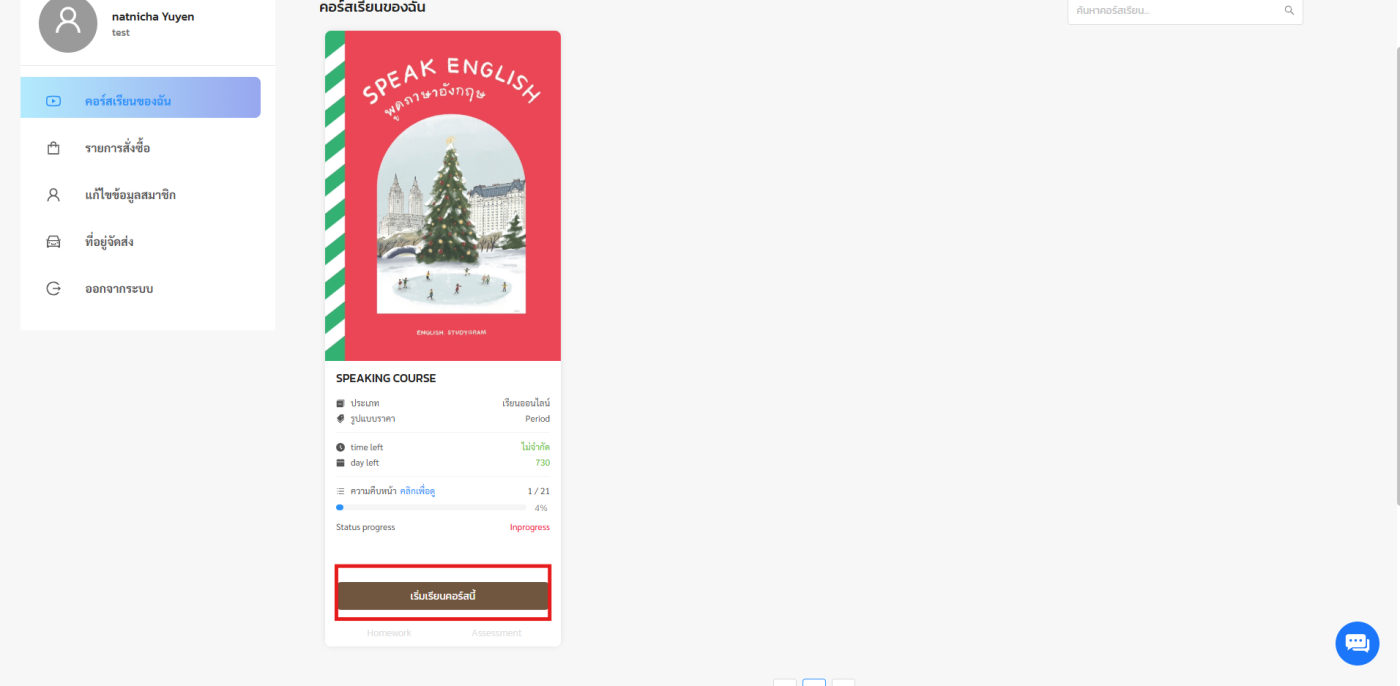 ขั้นตอนที่ 2 ไปที่เมนูคอร์สเรียนของฉัน และกดเริ่มเรียนเพื่อเข้าสู่คอร์สเรียน