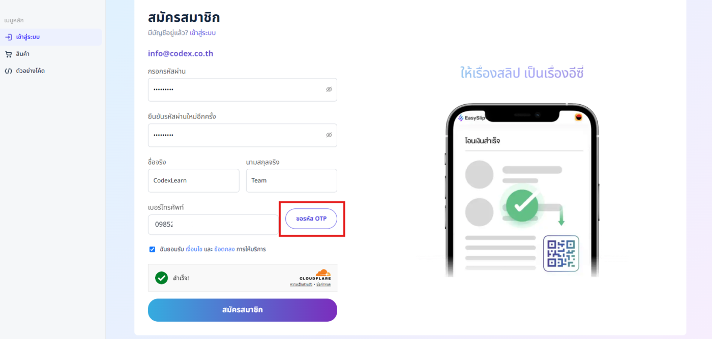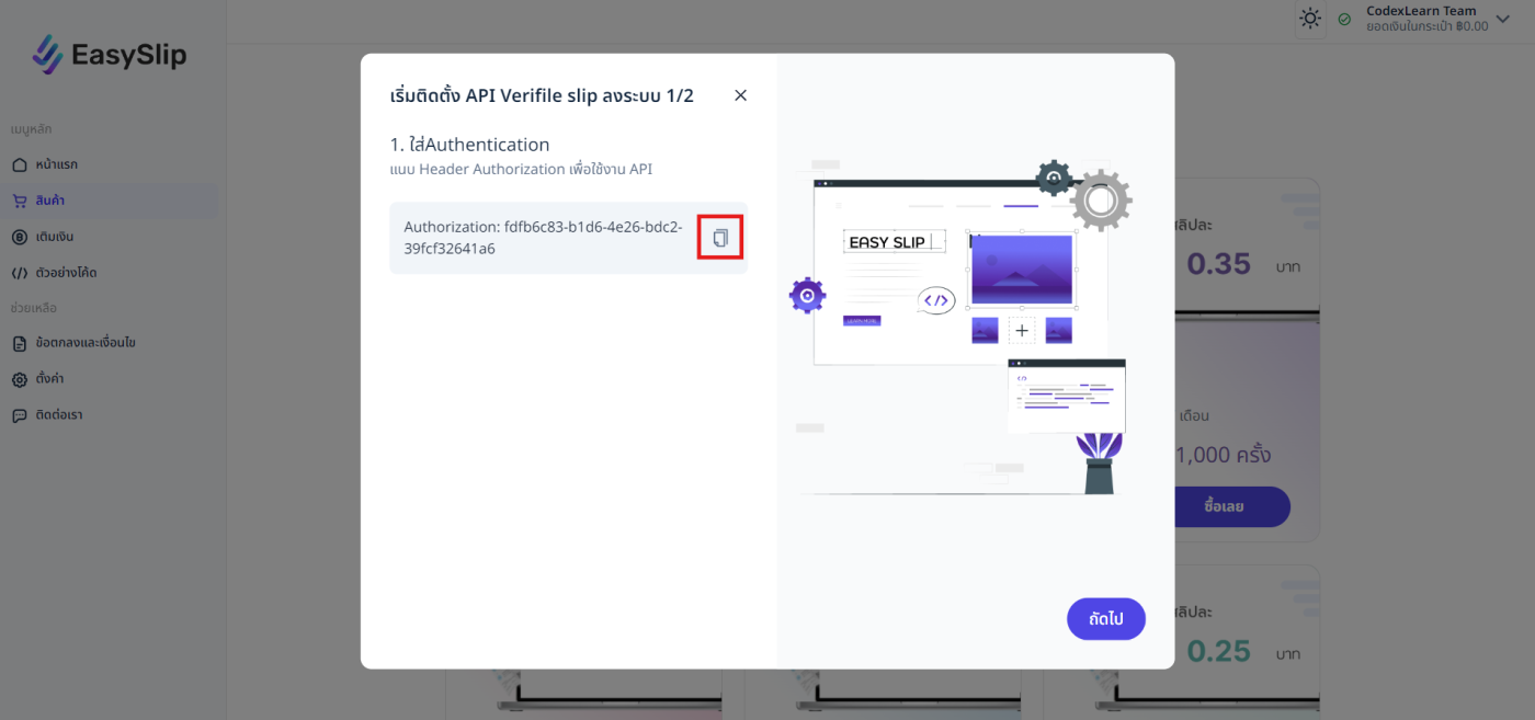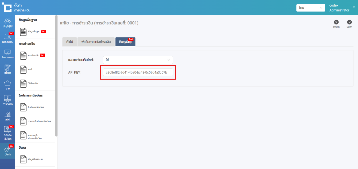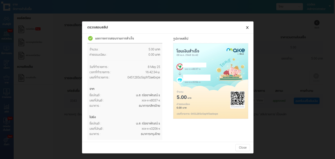 ระบบ CodexLearn รองรับการเชื่อมต่อกับระบบตรวจสอบสลิปอัตโนมัติผ่าน API ของโปรแกรม Easy Slip
