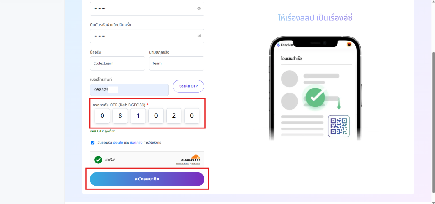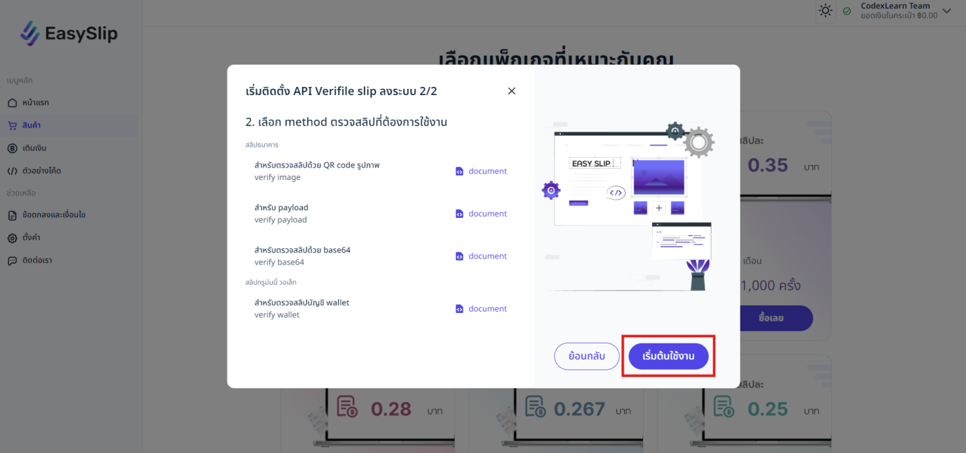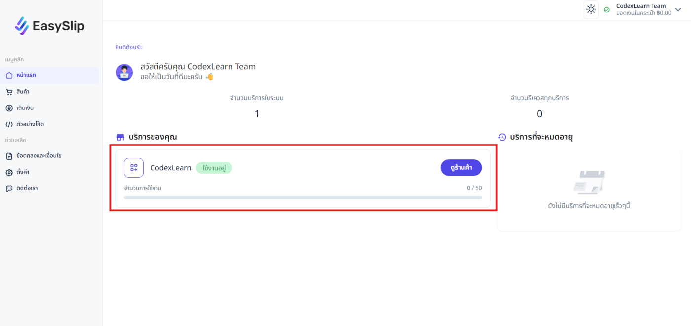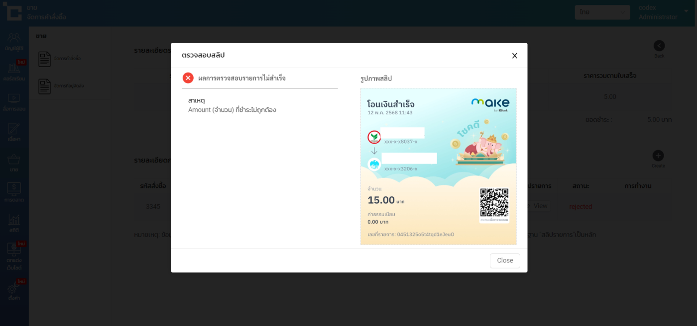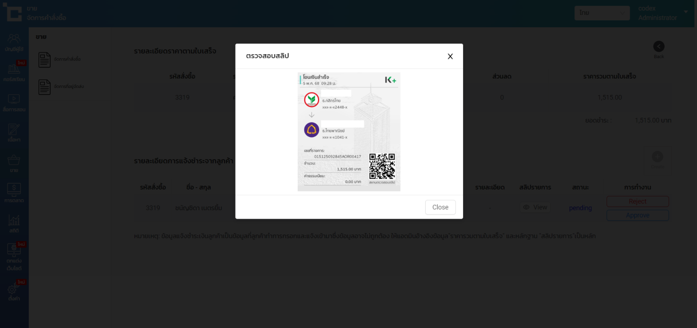 ระบบ CodexLearn รองรับการเชื่อมต่อกับระบบตรวจสอบสลิปอัตโนมัติผ่าน API ของโปรแกรม Easy Slip