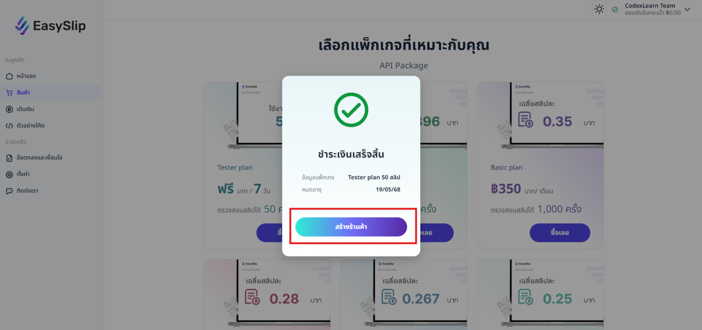 เมื่อชำระเงินเรียบร้อย ให้ทำการกด สร้างร้านค้า