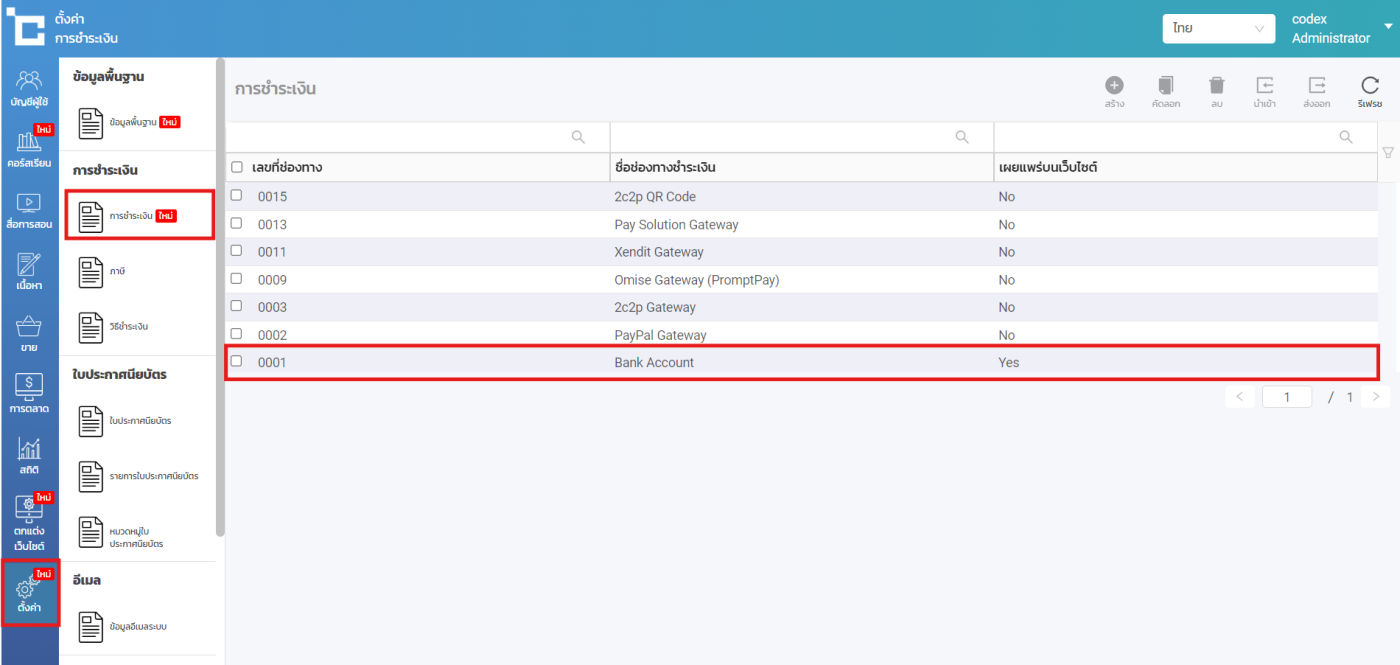 ไปยังเมนู ตั้งค่า > การชำระเงิน > Bank Account