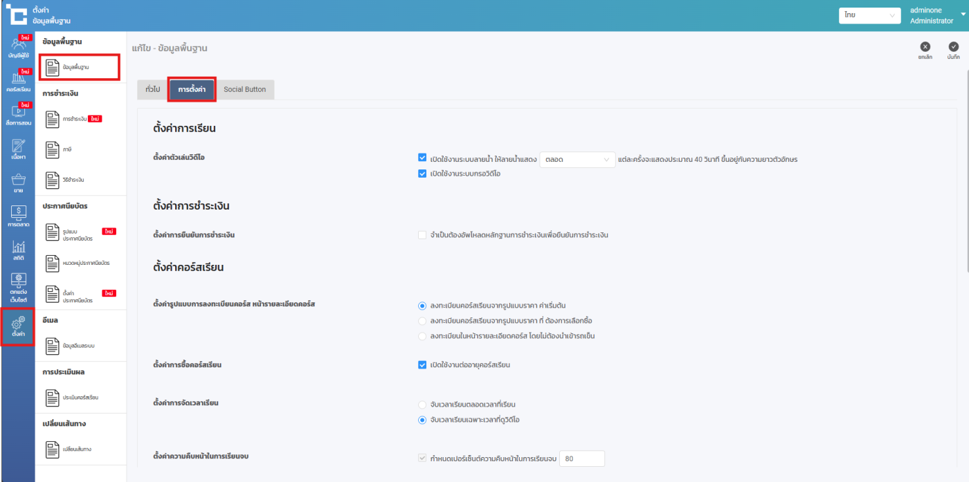 การตั้งค่าเมนูด้านบน