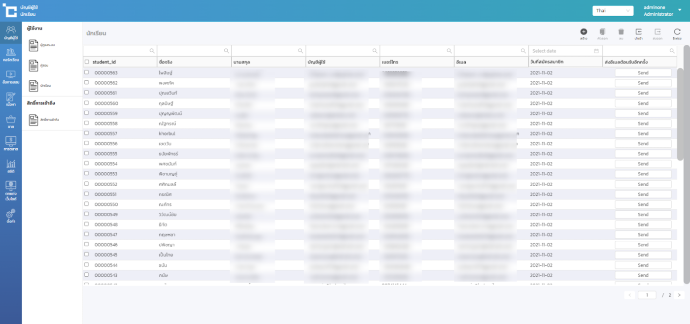 - หลังจากทำการกดบันทึก จะได้บัญชีรายชื่อของนักเรียนตามที่นำเข้าข้อมูล