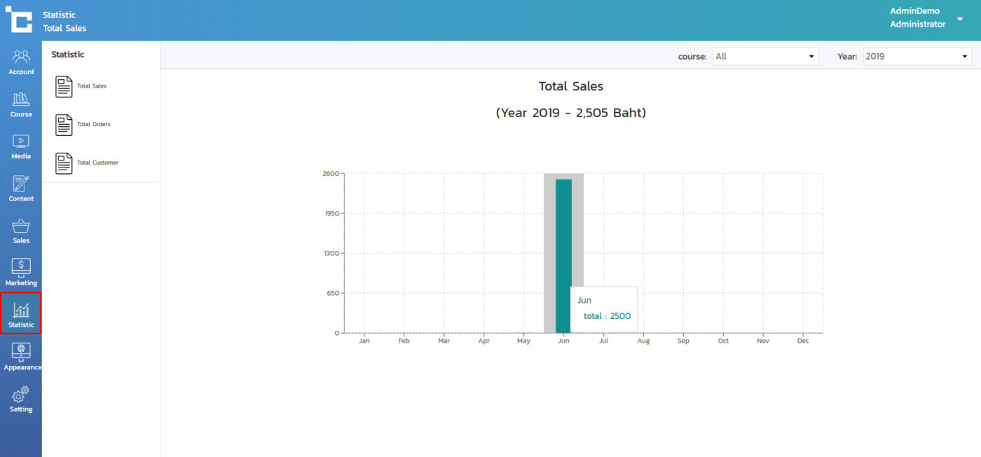 - Total Orders กราฟแสดงยอดสั่งซื้อคอร์ส