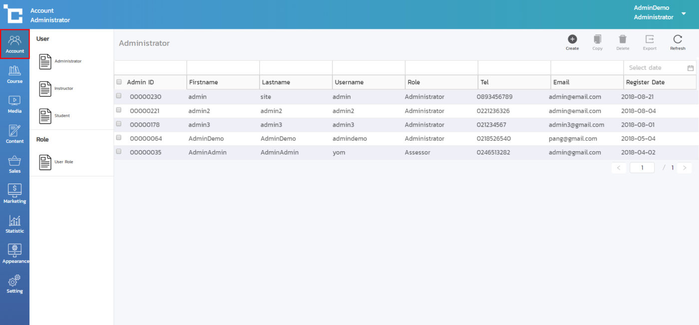 1. Account เป็นเมนูจัดการข้อมูลของผู้ใช้งาน ประกอบด้วย 2 ส่วนหลัก ได้แก่