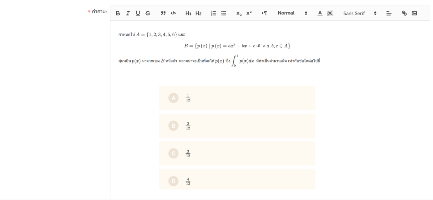 เพื่อแก้ไขปัญหาของคำถาม และ ตัวเลือก ของข้อสอบ อาทิเช่น คณิตศาสตร์ , ฟิสิกส์ , เคมี หรืออื่นๆ ที่มีลักษณะของคำถาม และตัวเลือกที่รูปแบบต้องใช้สัญลักษณ์ ทีมงานจึงทำการพัฒนาระบบแบบทดสอบให้ลูกค้าสามารถเพิ่มรูปแบบในแบบทดสอบได้ ไม่ว่าจะเป็นตรงส่วนของ คำถาม หรือ ตัวเลือก โดยมีวิธีการใช้งานดังนี้