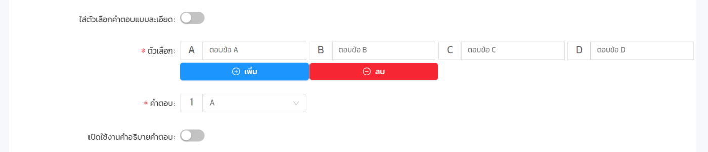 1.2. ทำการกรอกข้อมูลขอตัวเลือก ตามปกติ > เปิดใช้งานคำอธิบายคำตอบเมื่อต้องการ > กดบันทึก
