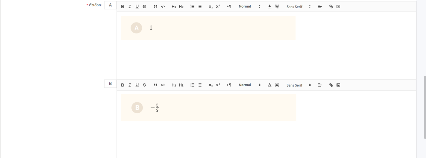 2.2 ทำการเปิดใช้งาน ใส่ตัวเลือกคำตอบแบบละเอียด เพื่อเปิดใช้กล่อง Text editor ในตัวเลือก