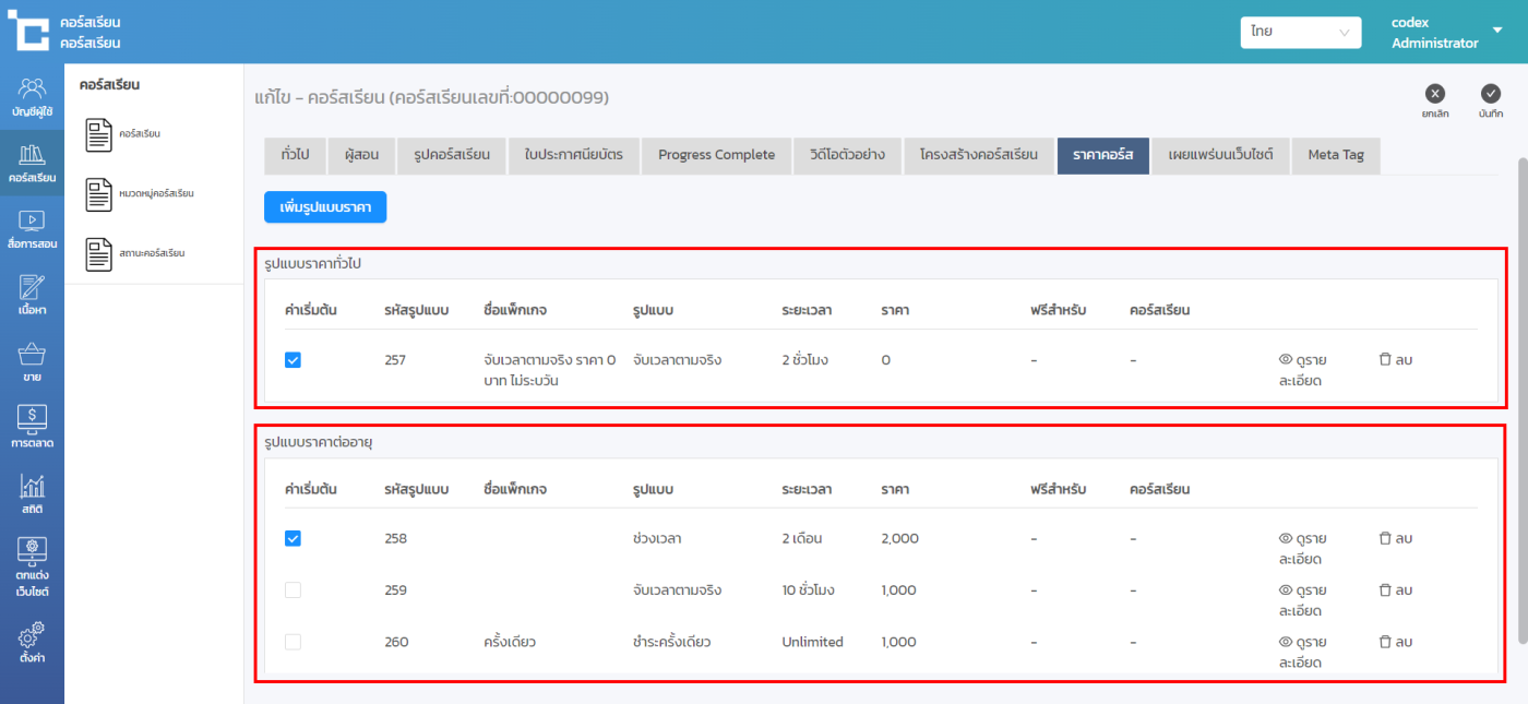 ขั้นตอนที่ 2 : ทำการสร้างคอร์สเรียนตามขั้นตอนปกติ แต่ในขั้นตอนการสร้างรูปแบบราคาของคอร์ส จะมี ประเภทราคา ขึ้นมาให้เลือก