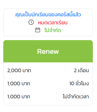 - Renew Price (รูปแบบราคาต่ออายุ) คือ ราคาสำหรับการซื้อคอร์สเรียนซ้ำ