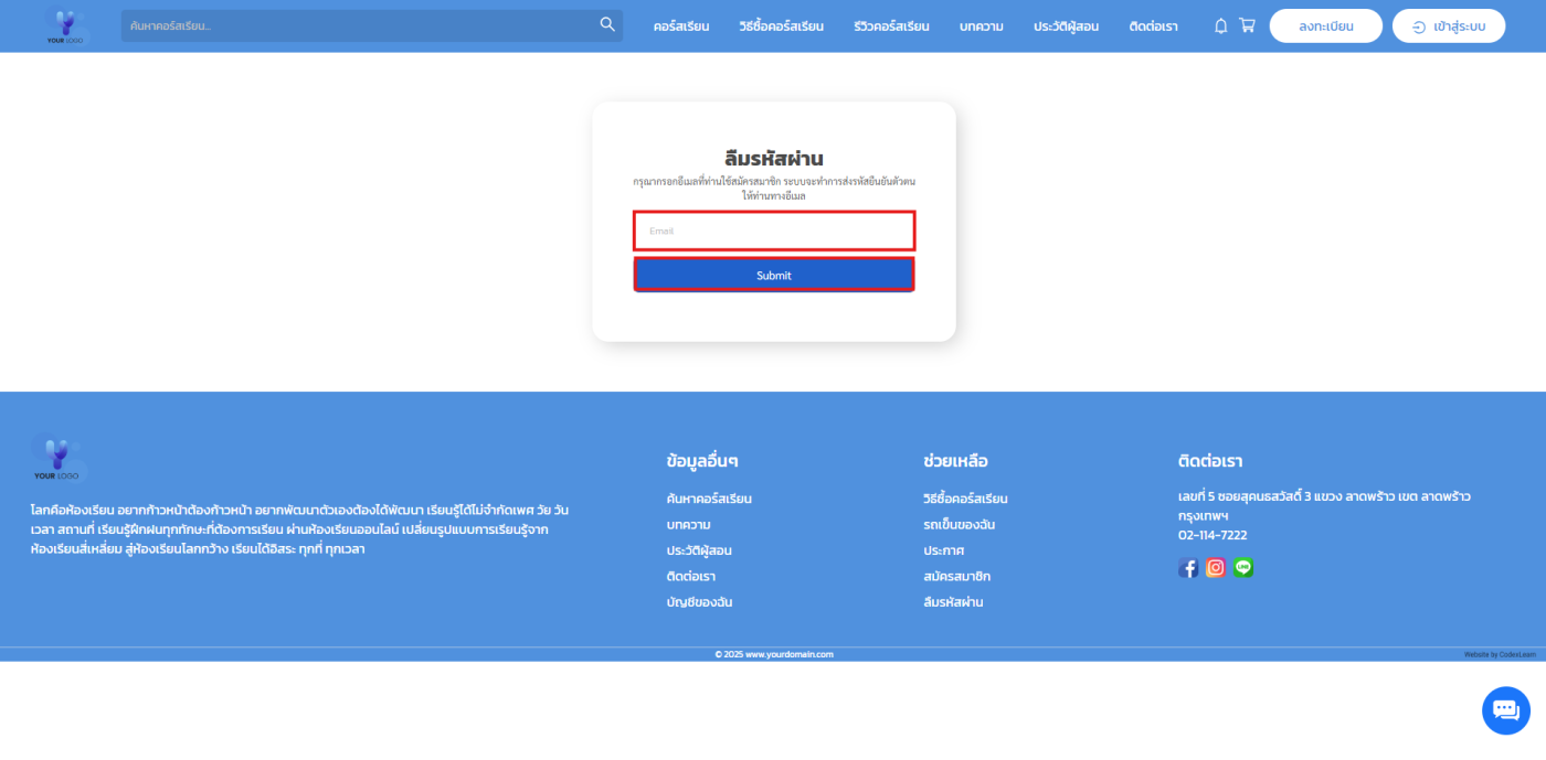 หากผู้เรียนลืมรหัสผ่าน สามารถกด Forget password ในหน้า Login ได้