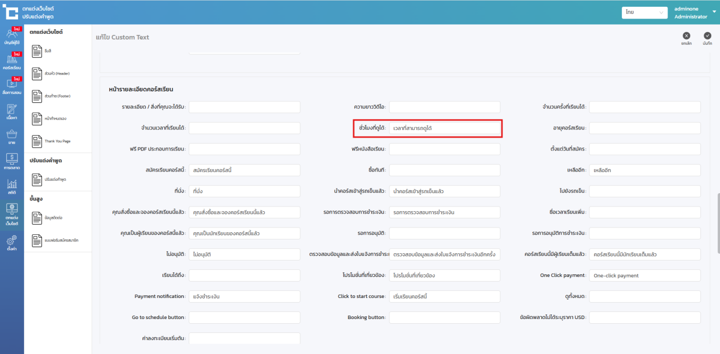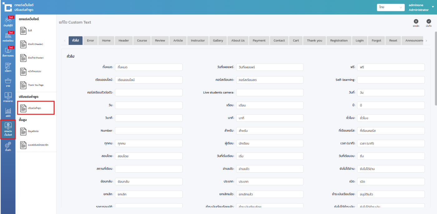 คุณสามารถปรับแต่งข้อความในส่วนต่าง ๆ ของเว็บไซต์เป็นคำที่คุณต้องการได้