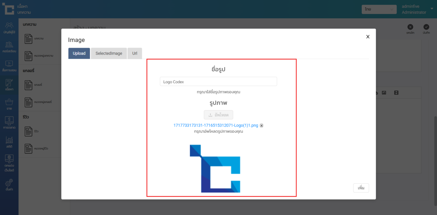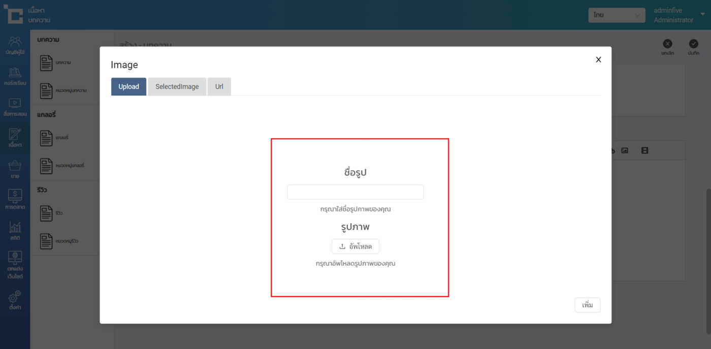 วิธีการอัพโหลดภาพในกล่อง Text editor