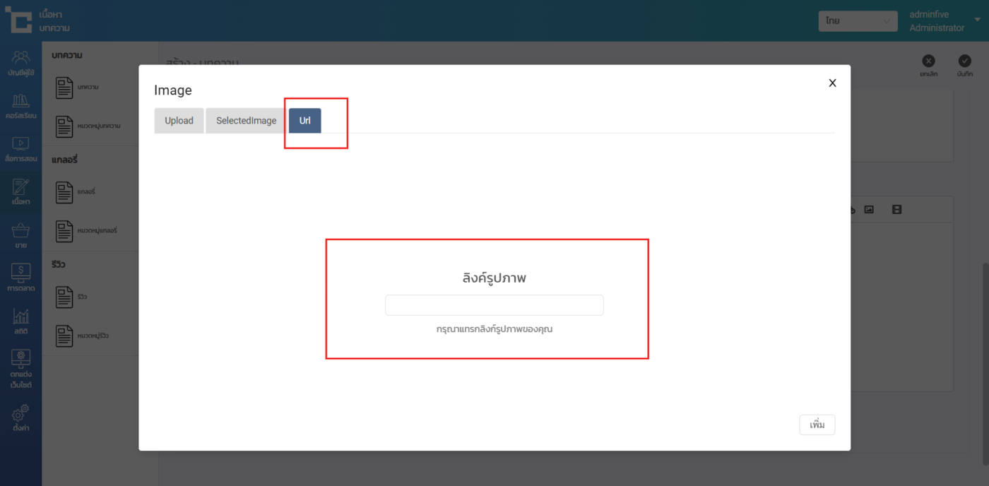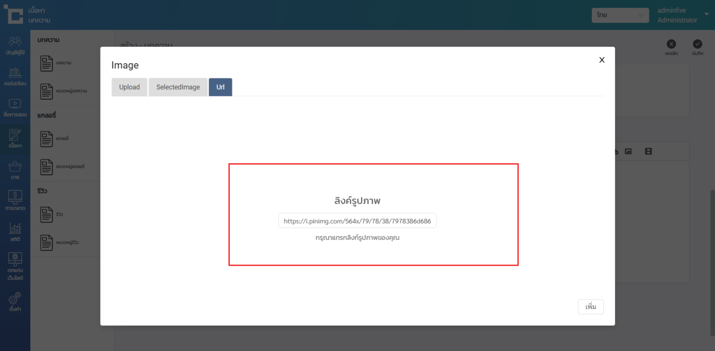 หน้า URL สำหรับใส่ลิงค์ URL ของรูปภาพ