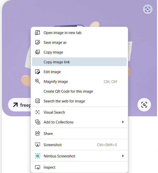 คลิกขวาที่รูปภาพ แล้วเลือก Copy Image link