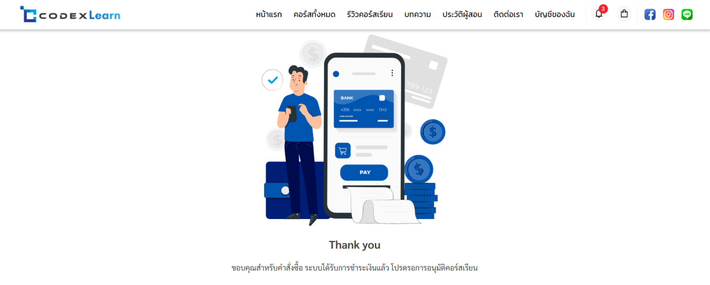 ขั้นตอนที่ 2 : ไปยังเมนูตกแต่งเว็บไซต์ > Thank you page > เปิดใช้งาน Use Thank you page > ทำการกดที่ Icon รูปภาพ และวางลิ้งค์ กด OK