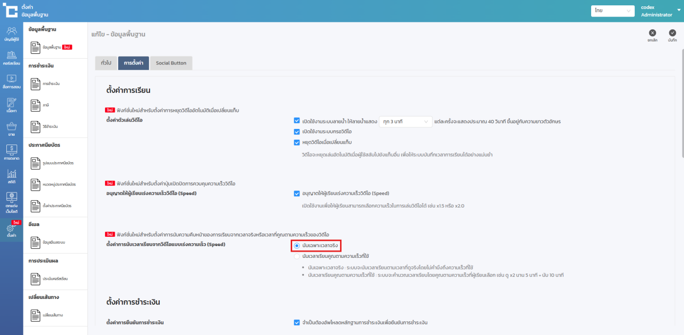 การเปิดใช้งาน การตั้งค่าให้ระบบทำการนับระยะเวลาการดูวิดีโอตามความเร็วของผู้เรียน