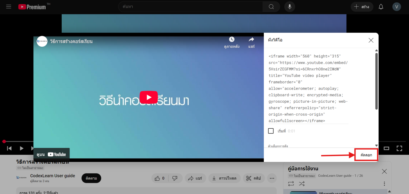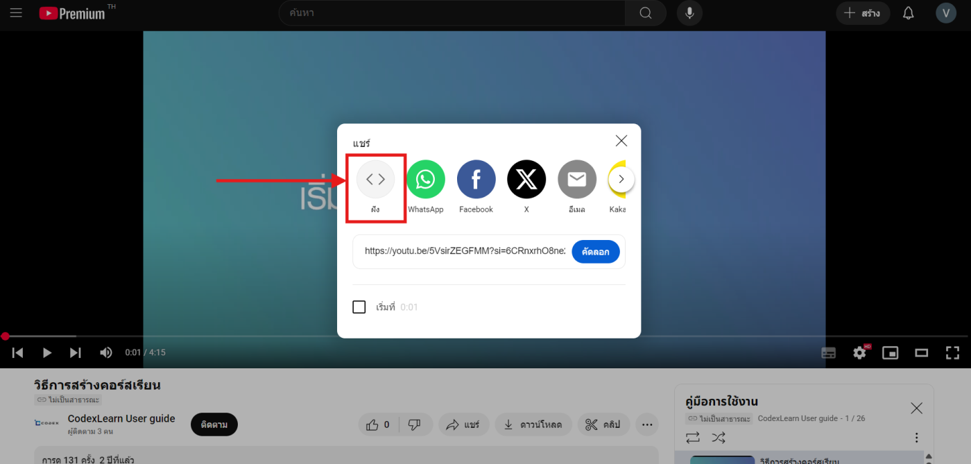 - นำลิ้งค์ที่คัดลอกจาก YouTube มาวางที่ Video Embed